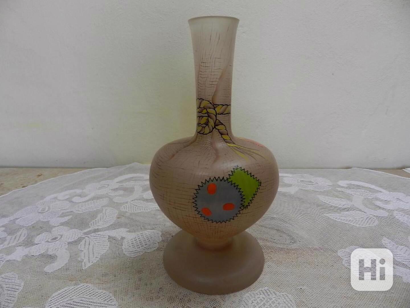 Zajímavá Autorská Váza, malované sklo, 20 stol.