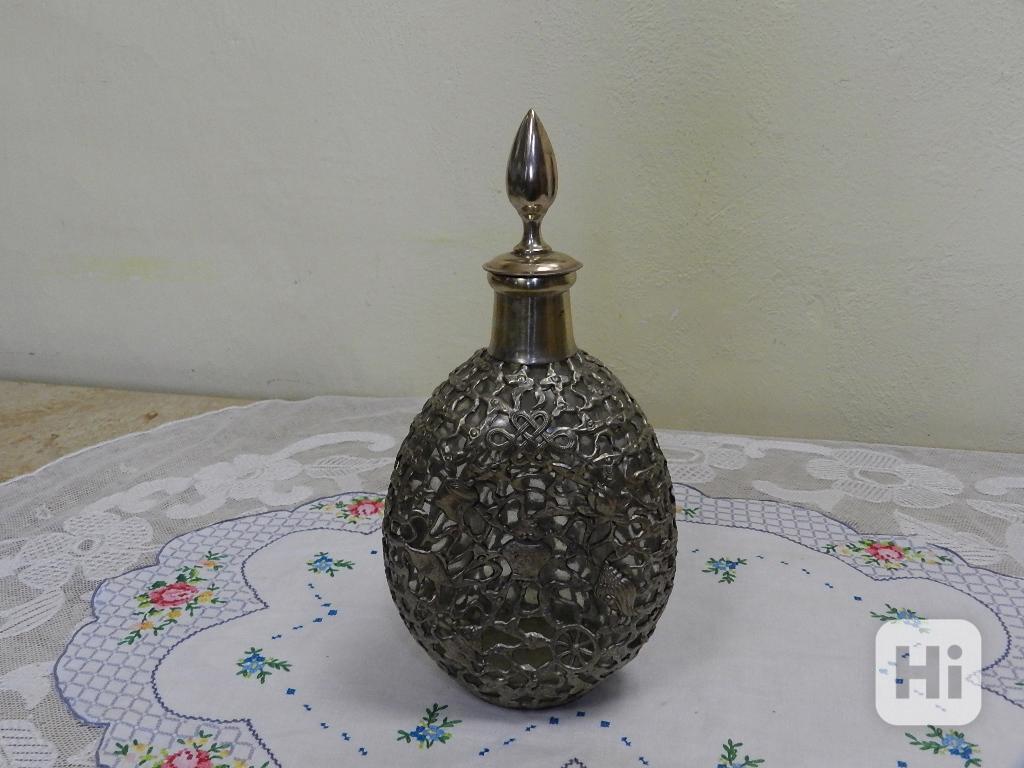 Krásná velmi stará nevídaná Karafa kovová montáž zdobení
