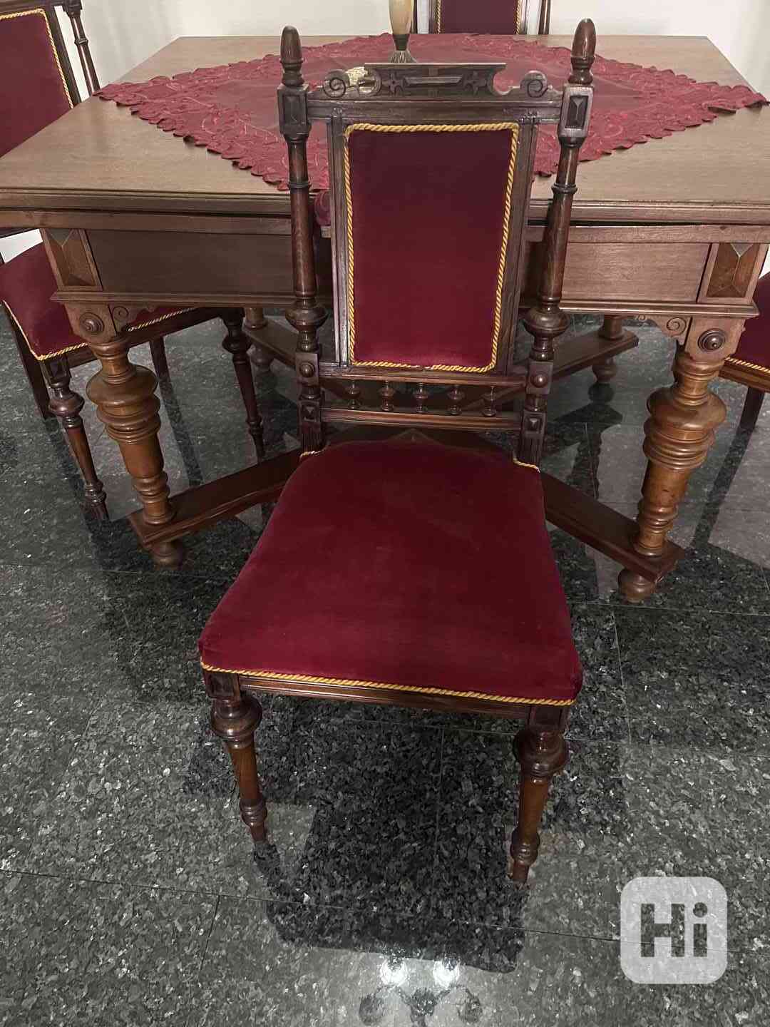 Starozitny rozkladaci stul+4 zidle