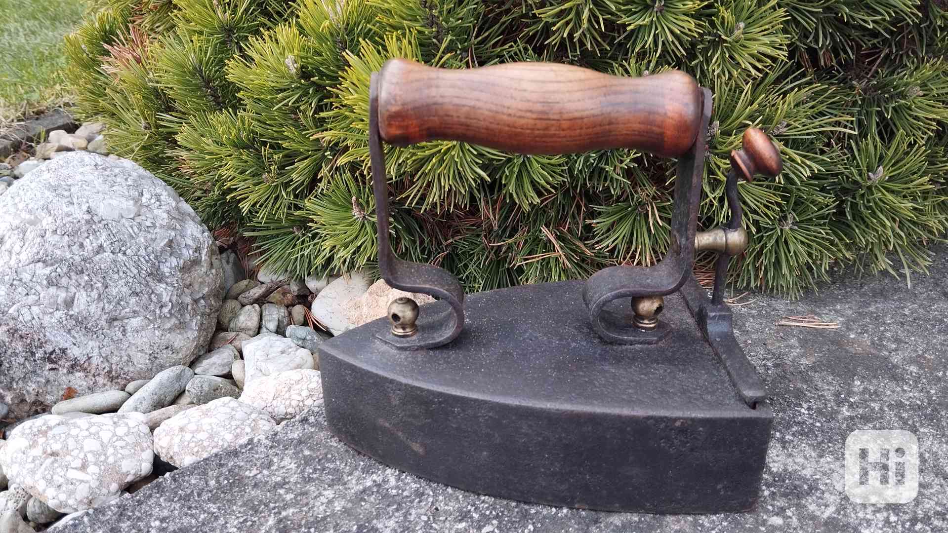 Stará velká orig. atypická žehlička s komínem