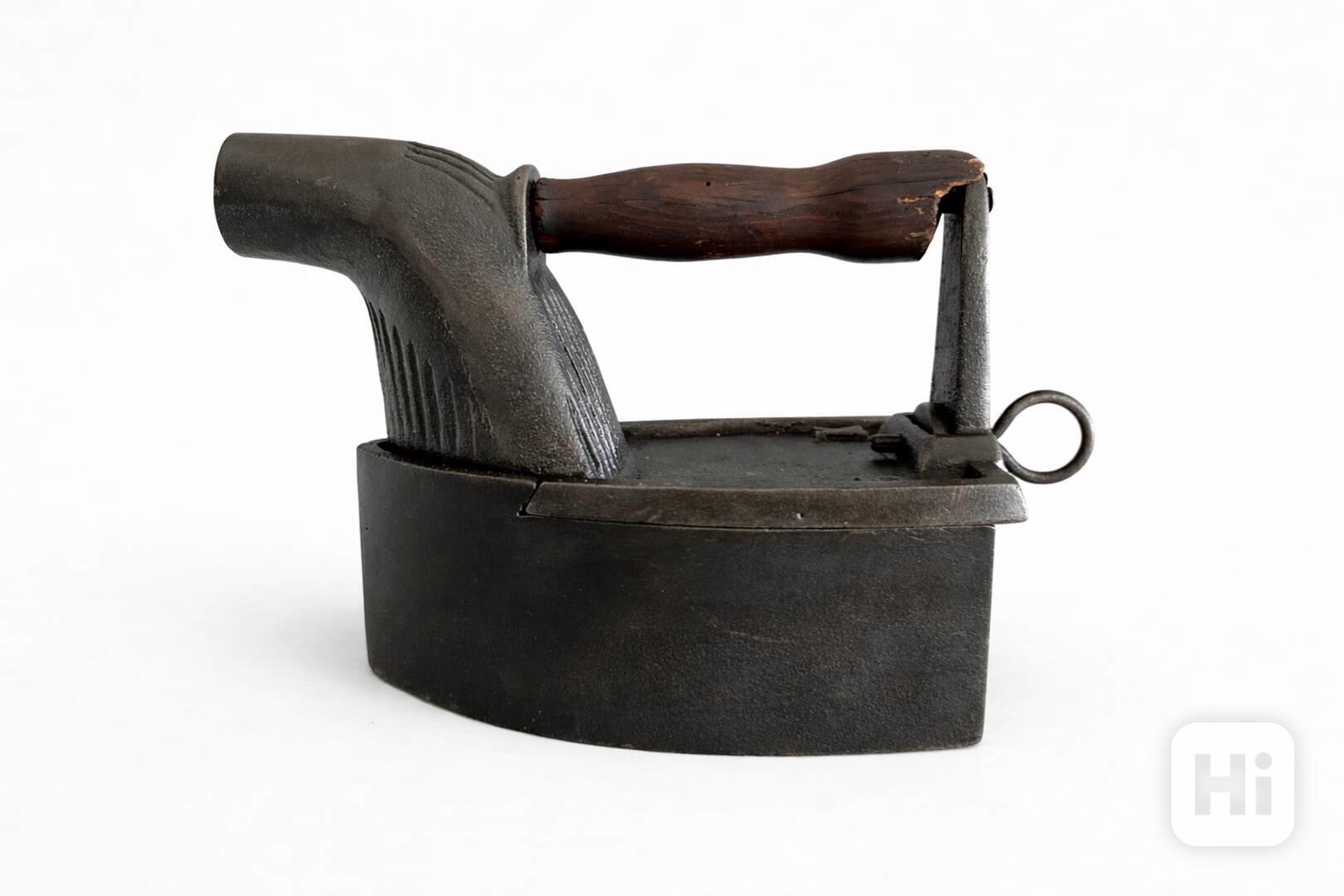 Stará masivní litinová žehlička s komínem – originál, atyp, 4,7 kg
