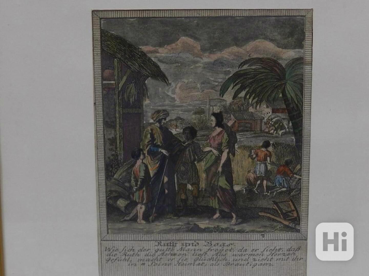 Barokní grafika, kolorovaný mědiryt, rámováno, zaskleno, 18stol.