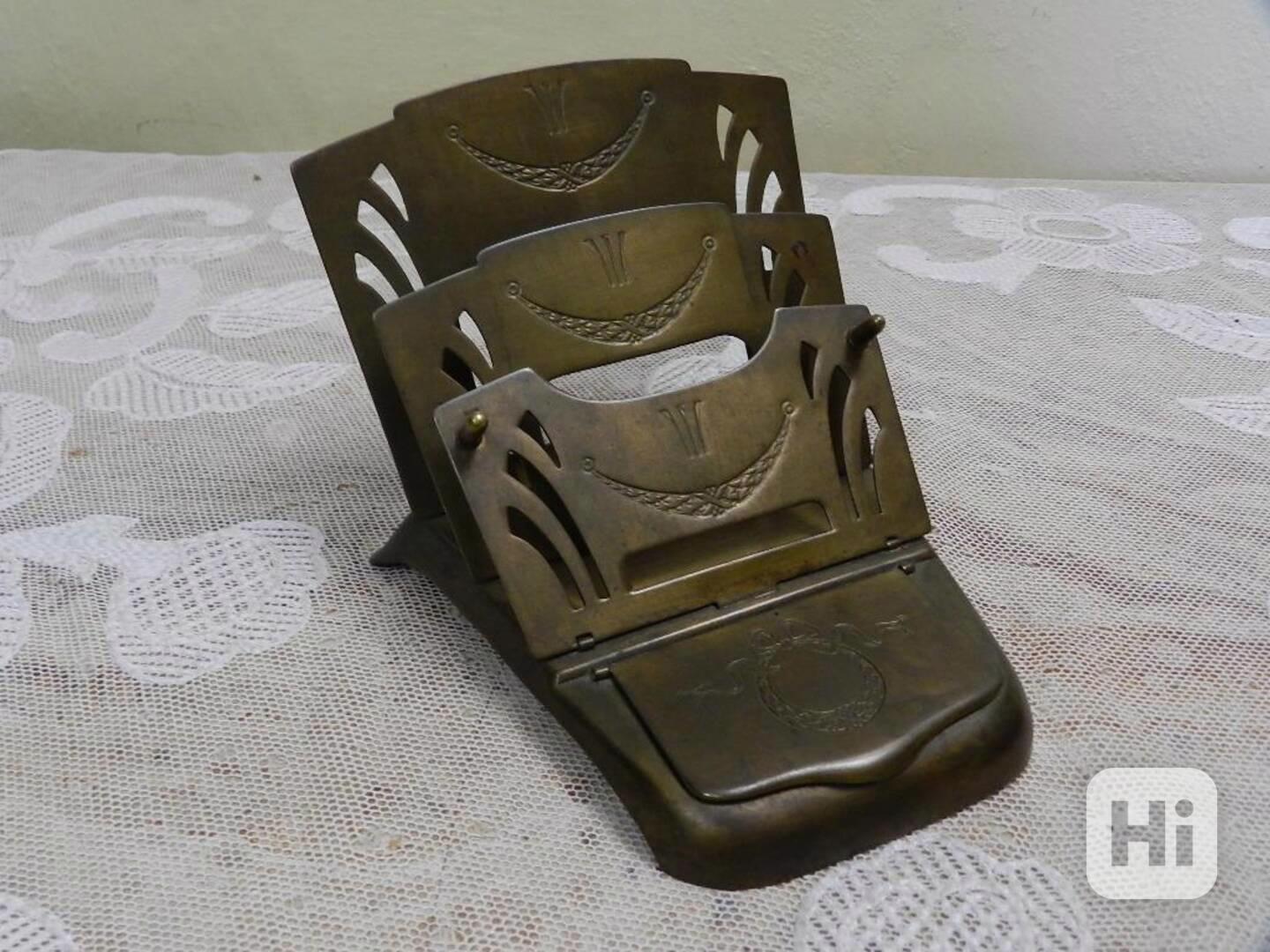 Krásný secesní Stojánek na dopisy, mosazné tělo - značeno DRGM, Austria, 19/20 stol.