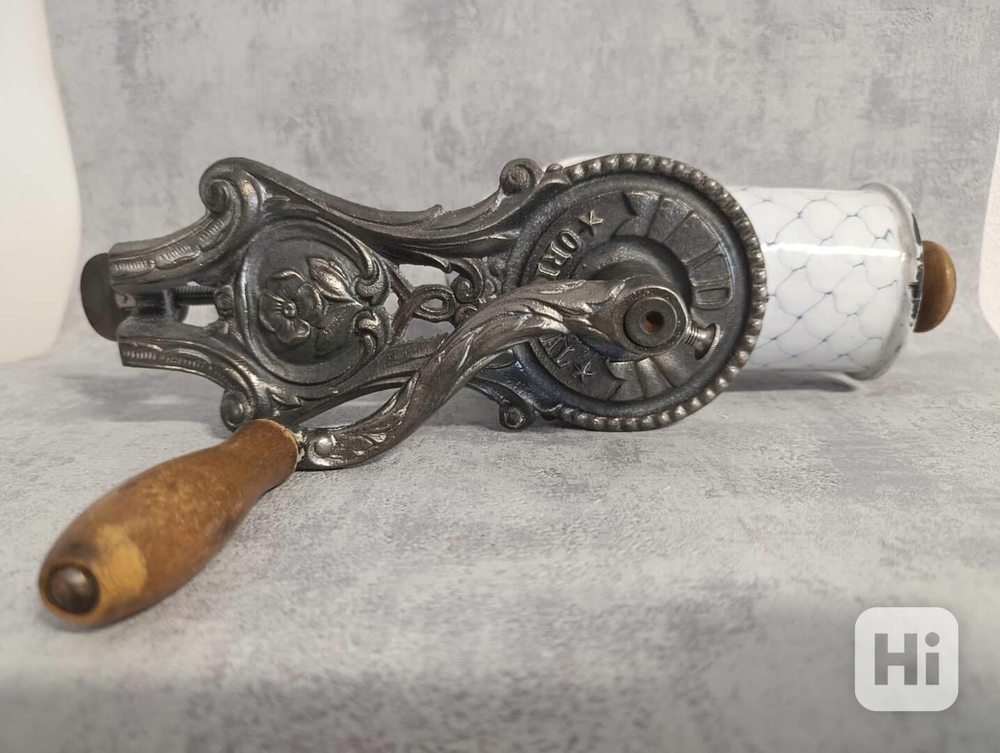 Velmi starý krásný velký mlýnek na strouhanku IDA s krásný, smaltem.