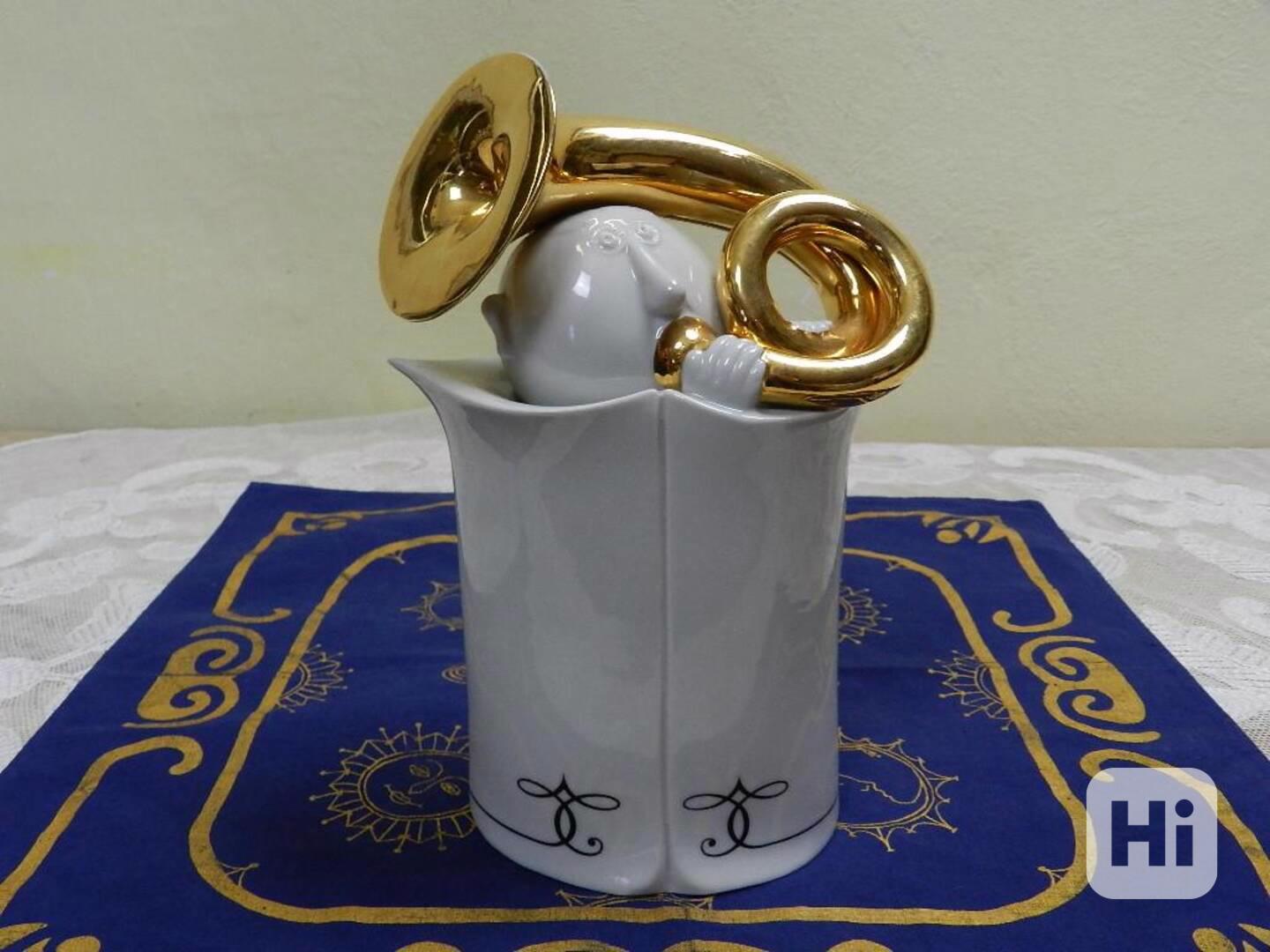 Porcelánová zlacená plastika, Trumpetista - Royal Dux Atelier, Helena Samohelová, signováno, 70 léta 20 stol.