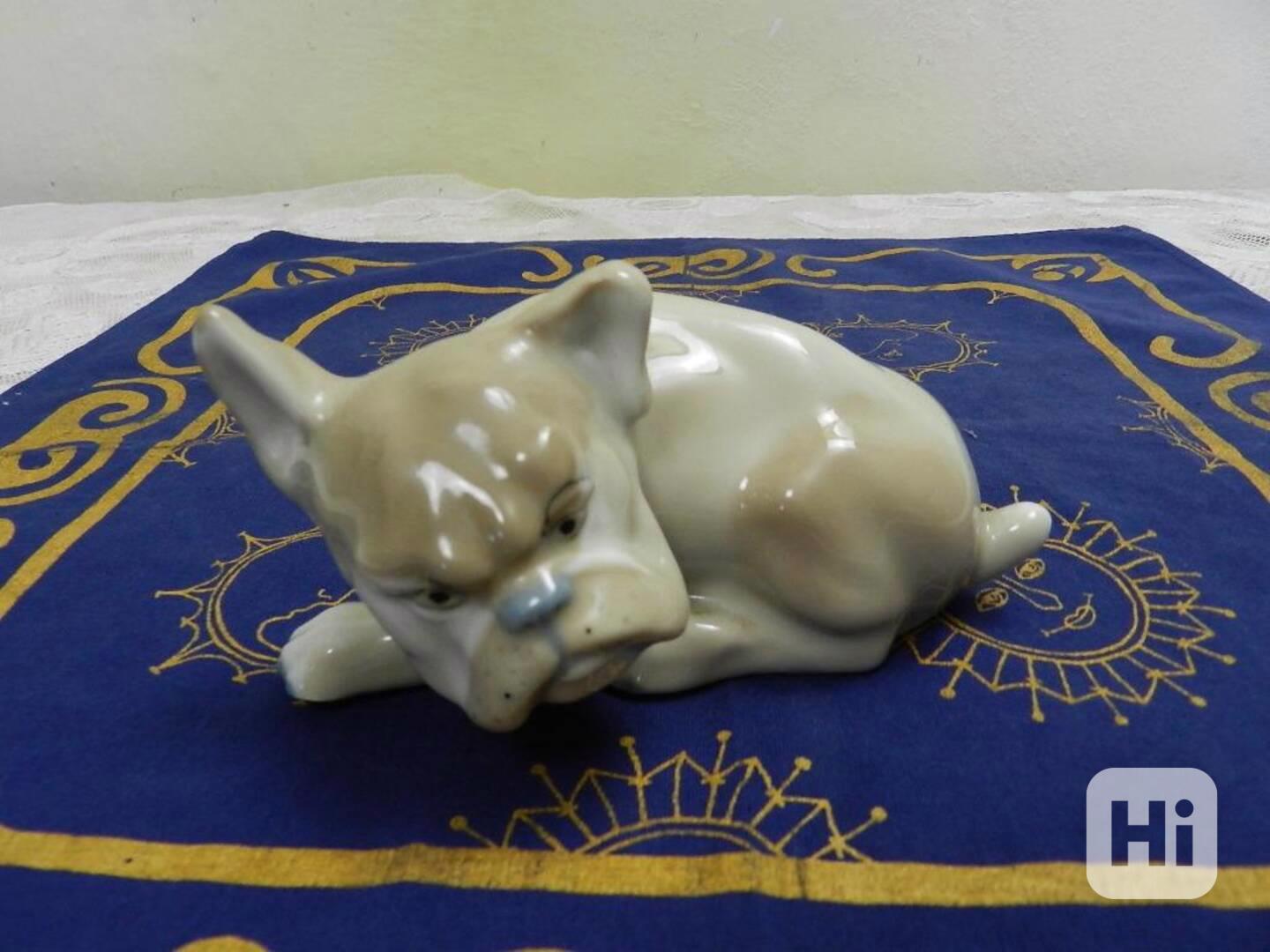 Krásná stará porcelánová plastika Pes Buldoček Eichwald Dubí