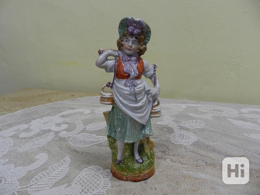 Hezká velmi stará malovaná Soška Žena s Vědry značeno čísly