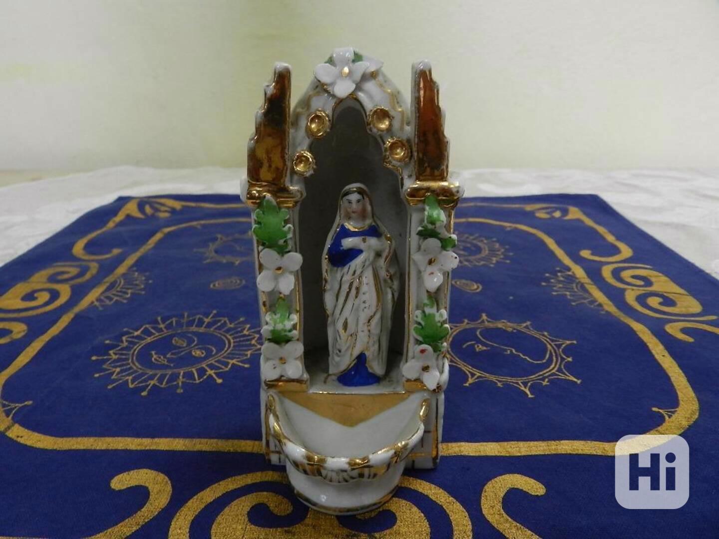 Krásná velmi stará porcelánová Kropenka ve tvaru oltáře s Madonou.