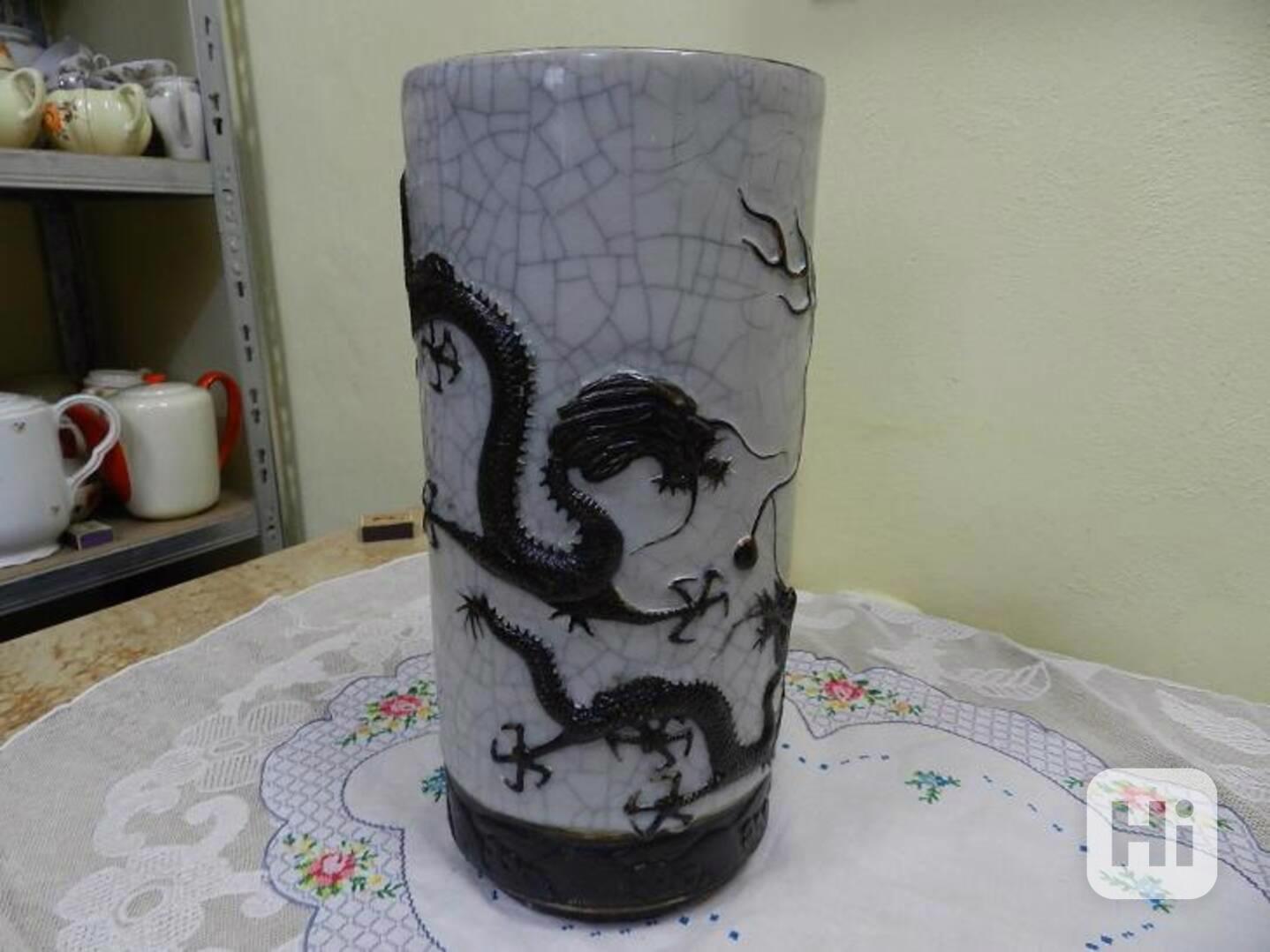 Krásná velmi stará masivní orientální Váza s plastickými motivy draků, značeno.