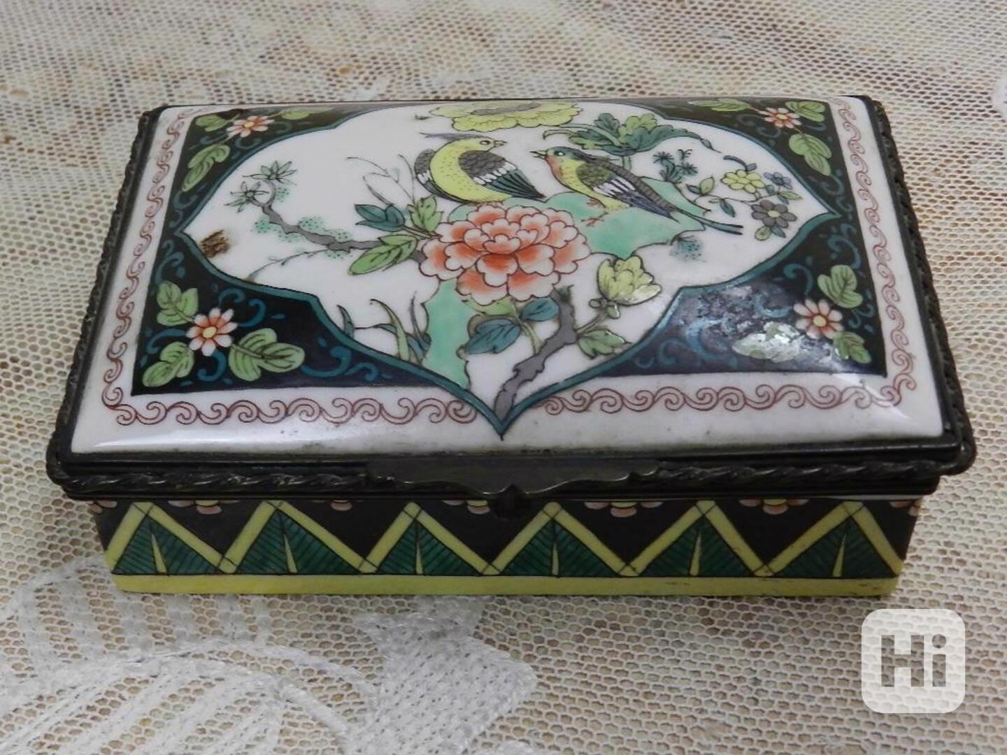 Krásná stará čínská porcelánová Dóza s pantem Ptáci