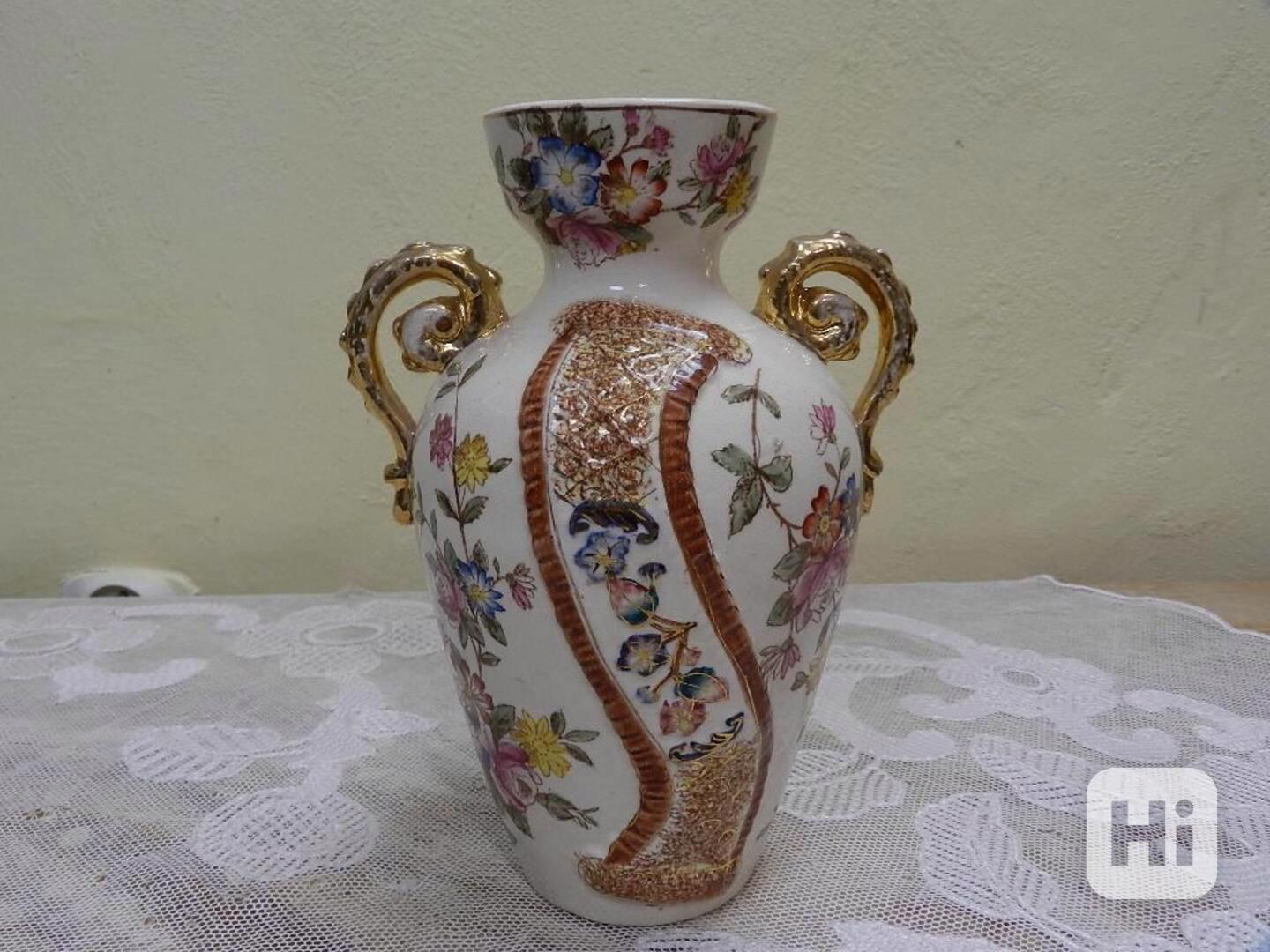 Hezká zlacená malovaná Váza s květinami, 1 pol. 20 stol.