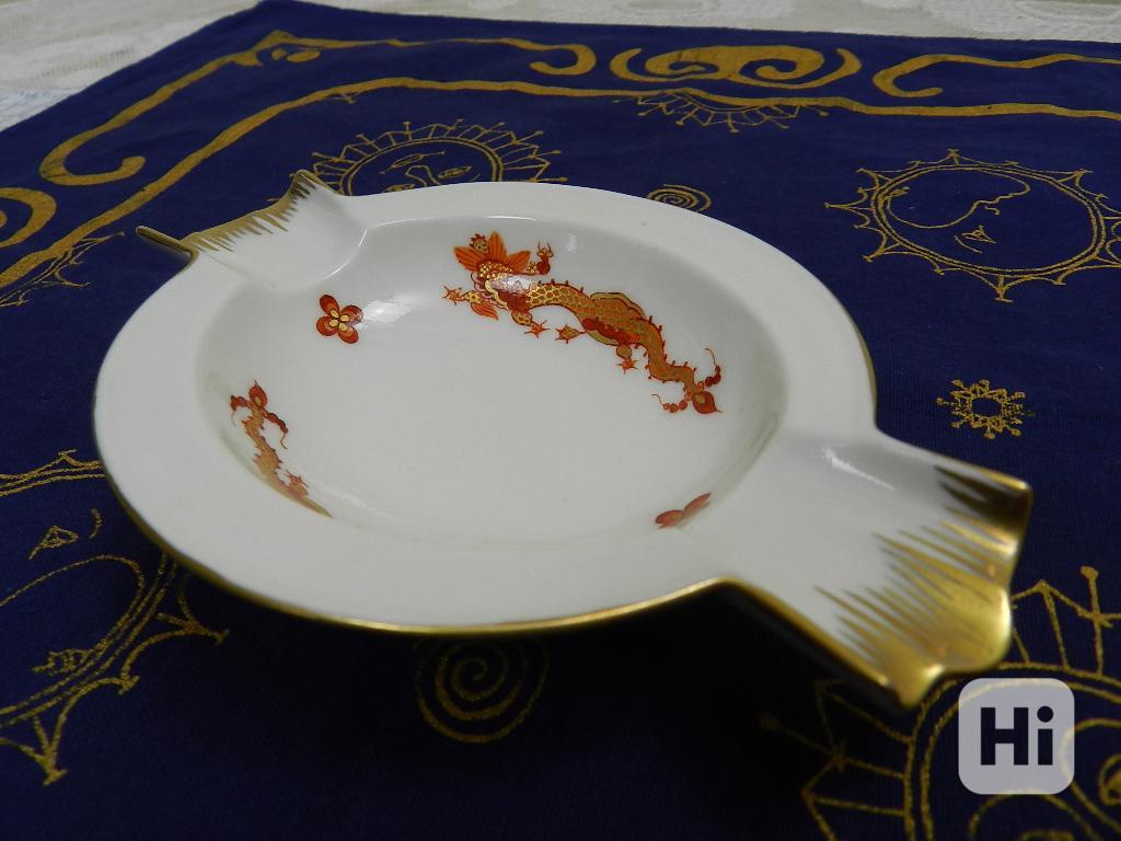 Zajímavý starý zlacený Popelník s Draky - Míšeň.