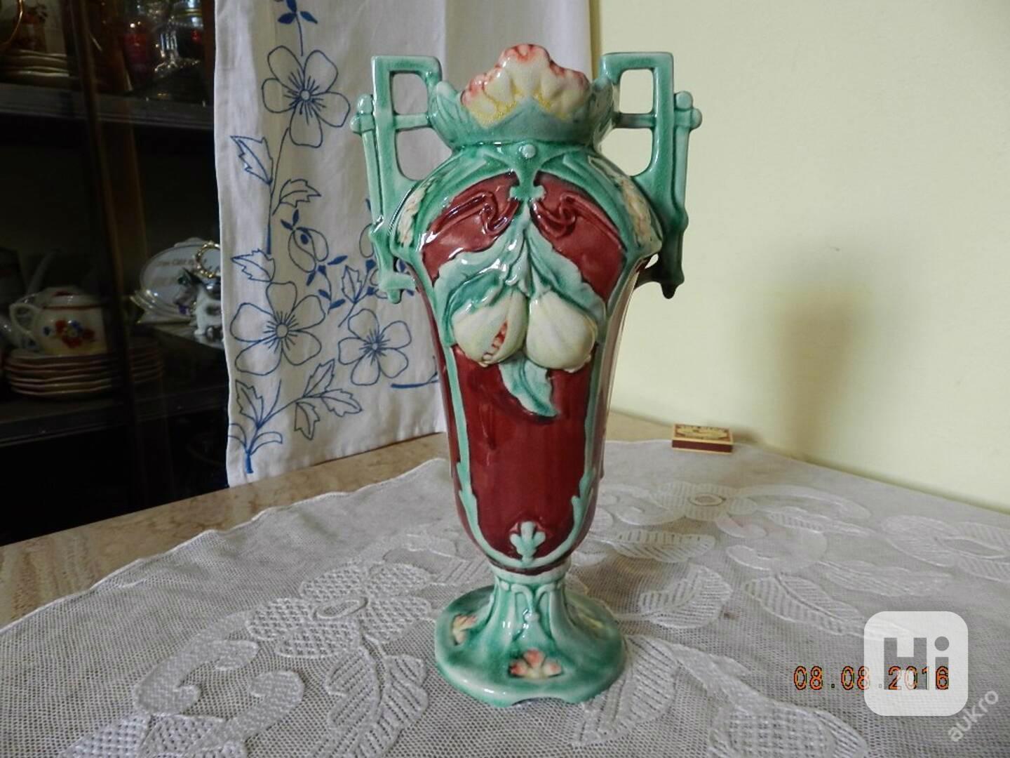 Krásná secesní malovaná keramická Váza - Majolika, kolem 1900.