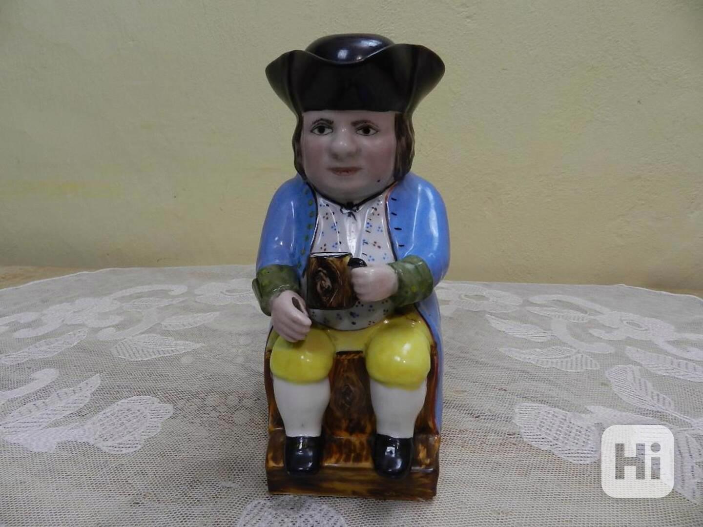 Zajímavá velmi stará malovaná figurální Láhev Džbán