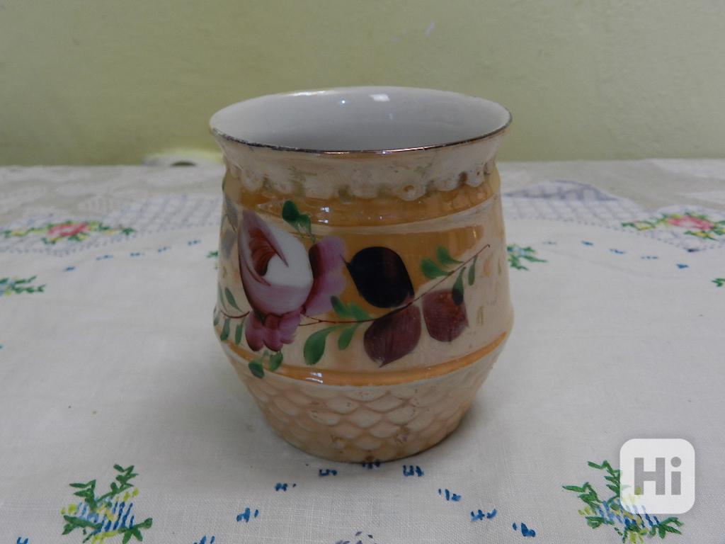 Hezký starý malovaný porcelánový Hrnek Mušlák.