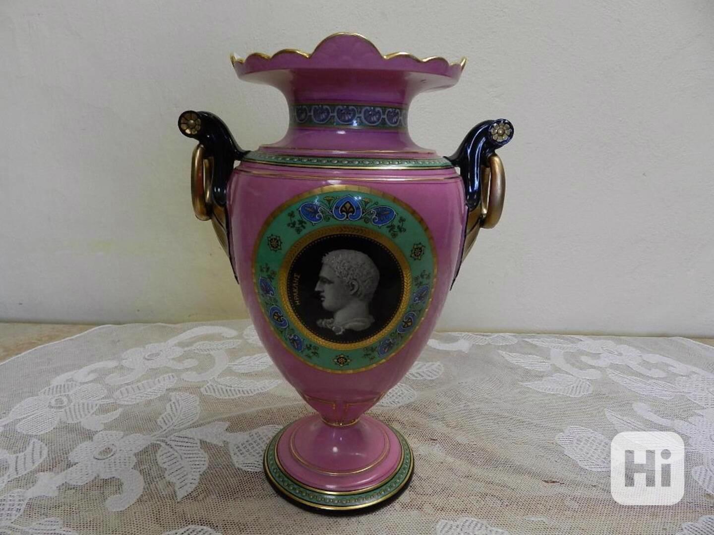 Krásná ručně malovaná porcelánová Váza v empírovém stylu, pestré barvy, zlacení, Top Stav, kolem 60-70 let 19stol.
