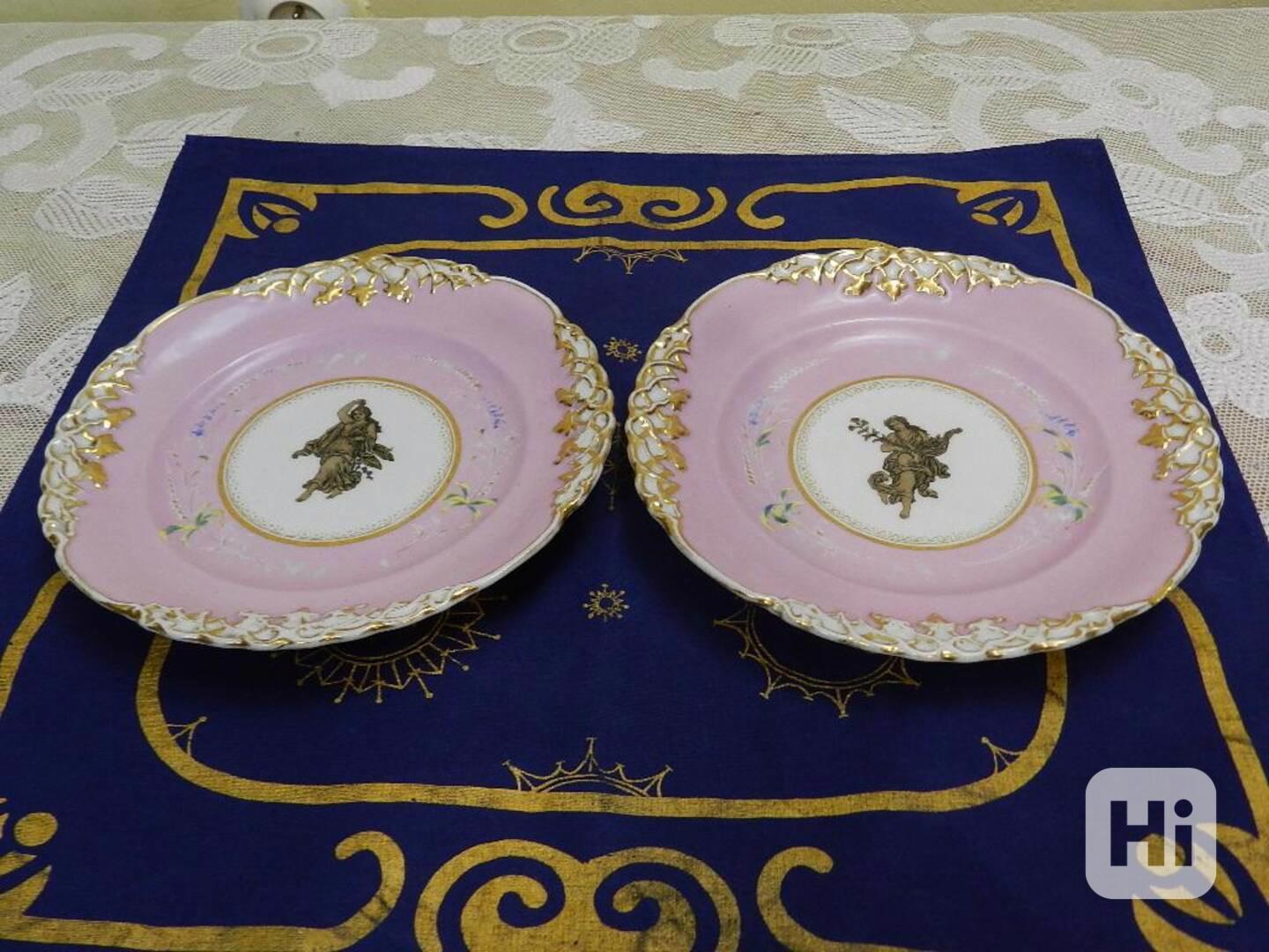 Zobrazit vše2 krásné velmi staré růžové zlacené Talíře Březová 19st.