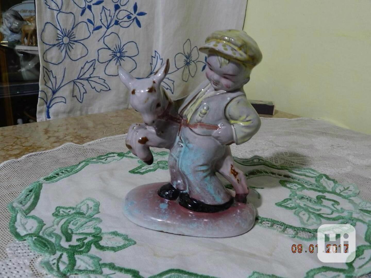 Hezká stará figurka - Chlapec s Kozlíkem.