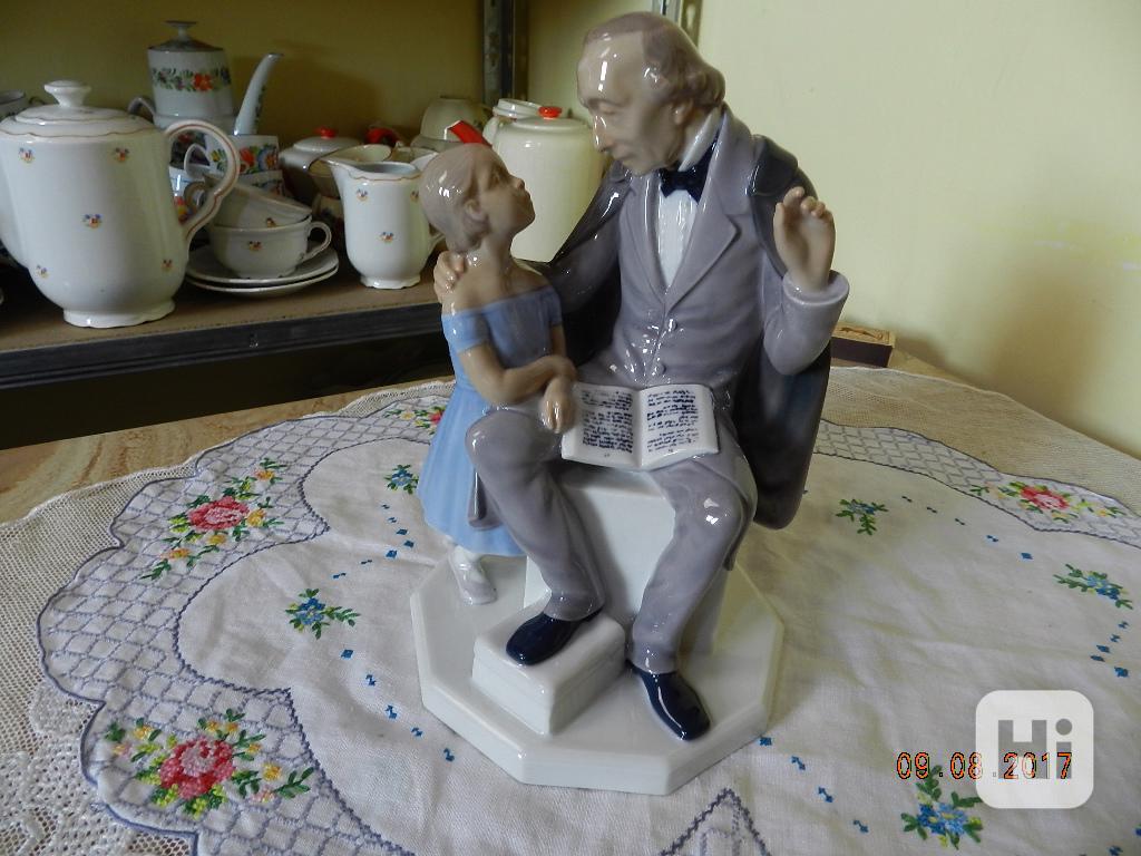 Zajímavé porcelánové sousoší, Hans Christian Andersen - Royal Copenhagen, Dánsko.
