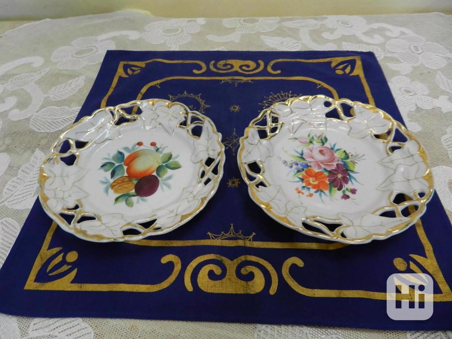 Krásné ručně malované zlacené Talíře Květiny a Ovoce 19st