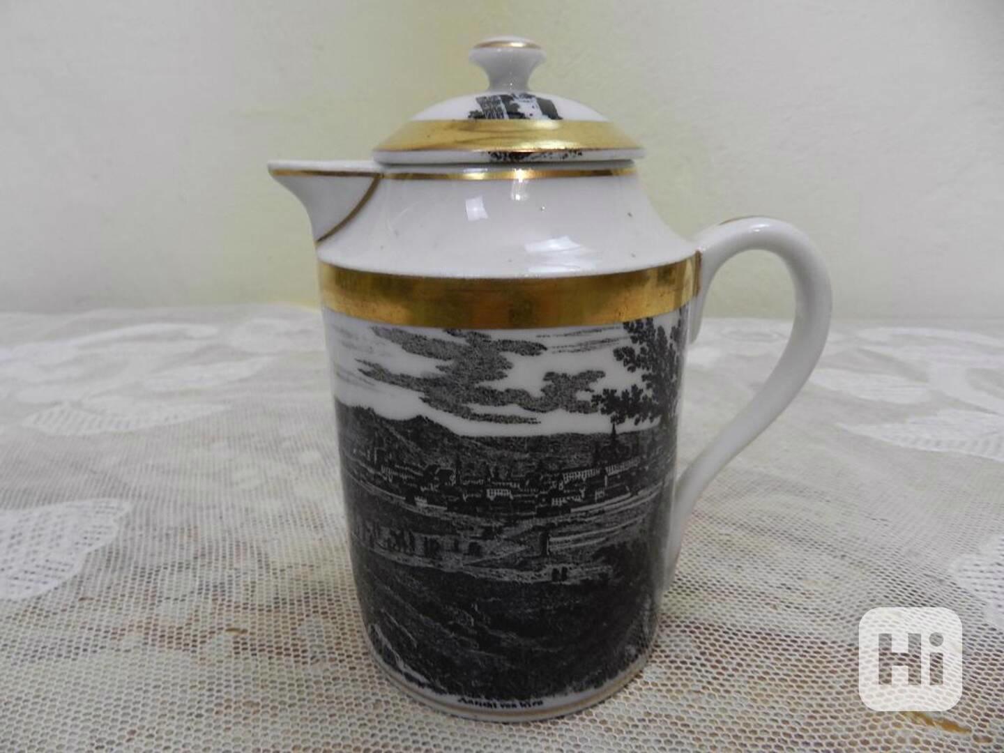 Zajímavá zlacená starožitná konvička s víčkem, Praha a Vídeň - Horní Slavkov, 19 stol.