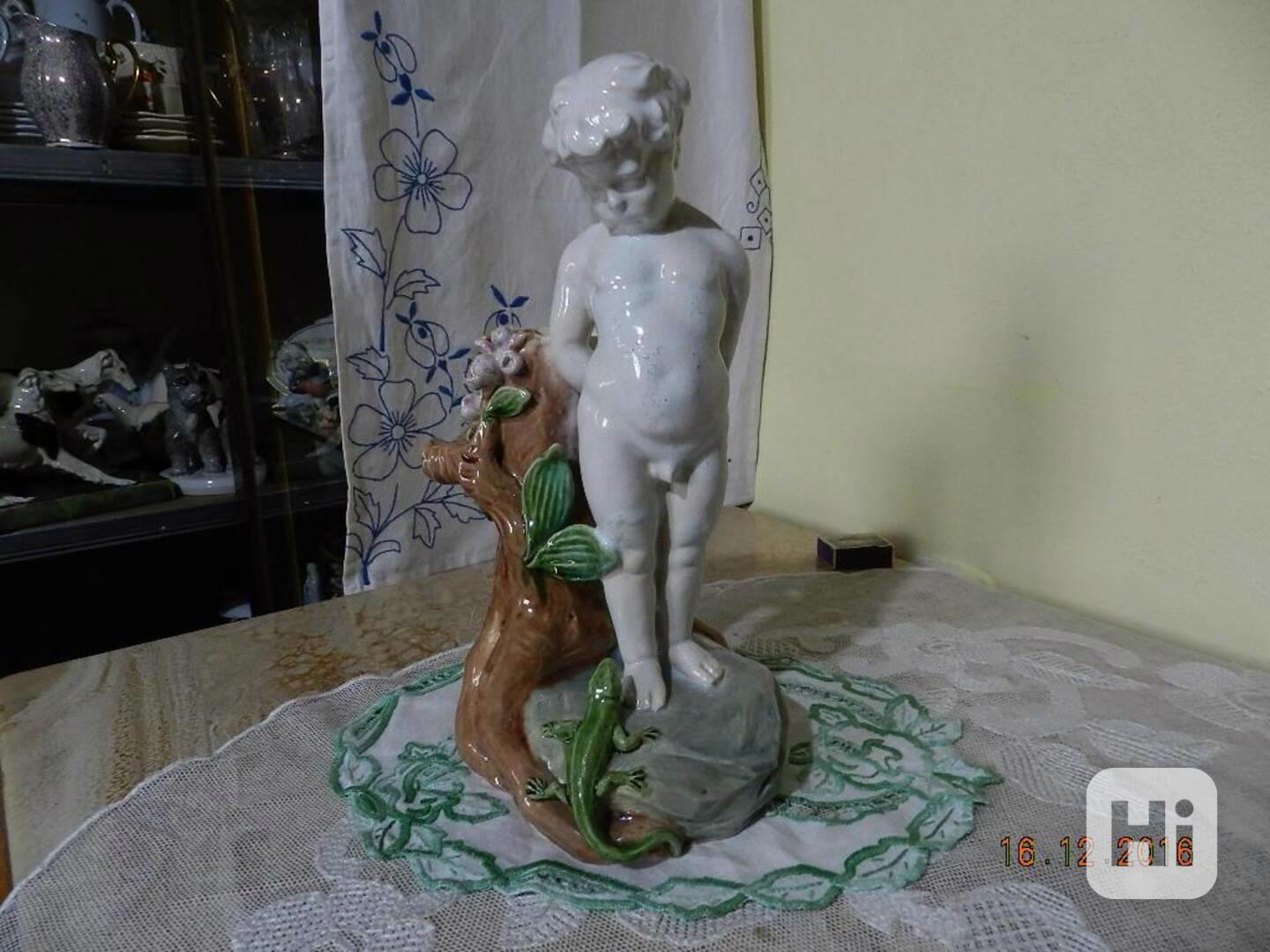 Krásná stará keramická soška Clapečka Putti - figurální Váza.