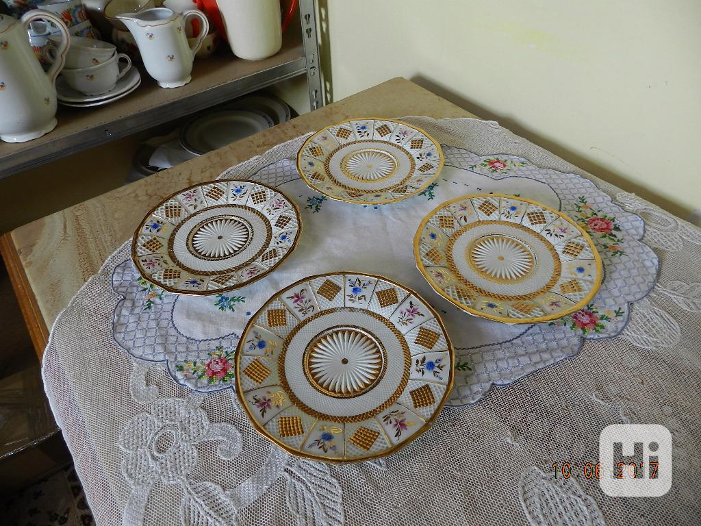 Luxusní velmi staré zlacené Talíře sada 4 kusy Míšeň Meissen