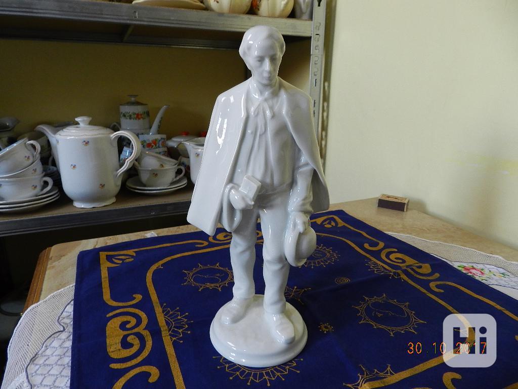 Hezká bílá soška kazatele - Bohemia Nová Role, Signováno na soklu, návrh E. Fischer.