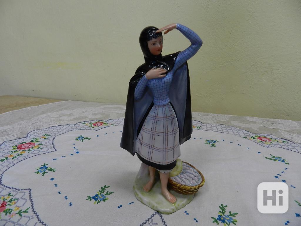 Zajímavá stará soška, Žena s košem ryb - Estremadura Mulher Portugal.
