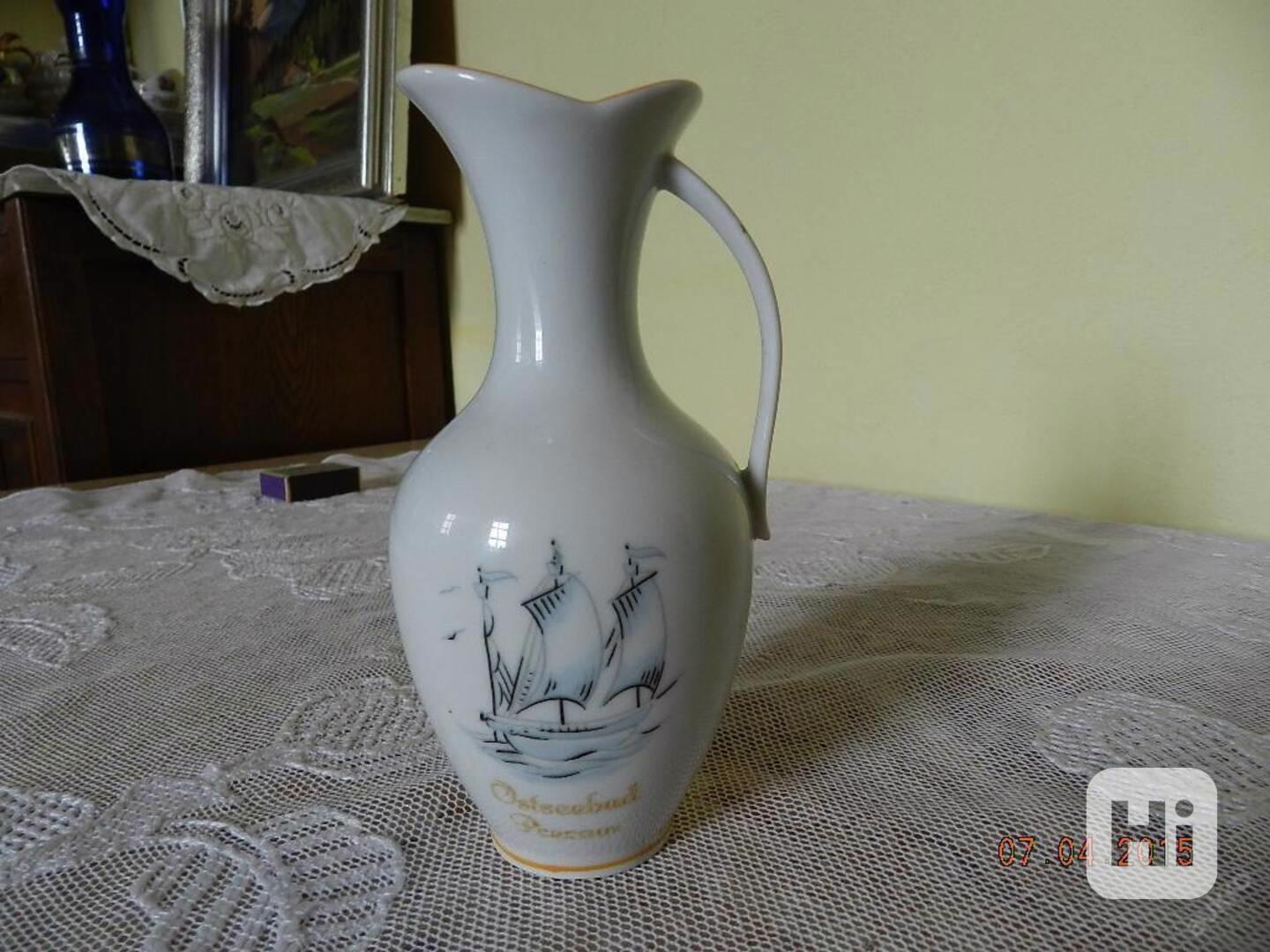 Nabízím hezkou porcelánovou vázu s motivem plachetnice, styl Brusel - Ostseebad Prerow PM GDR.