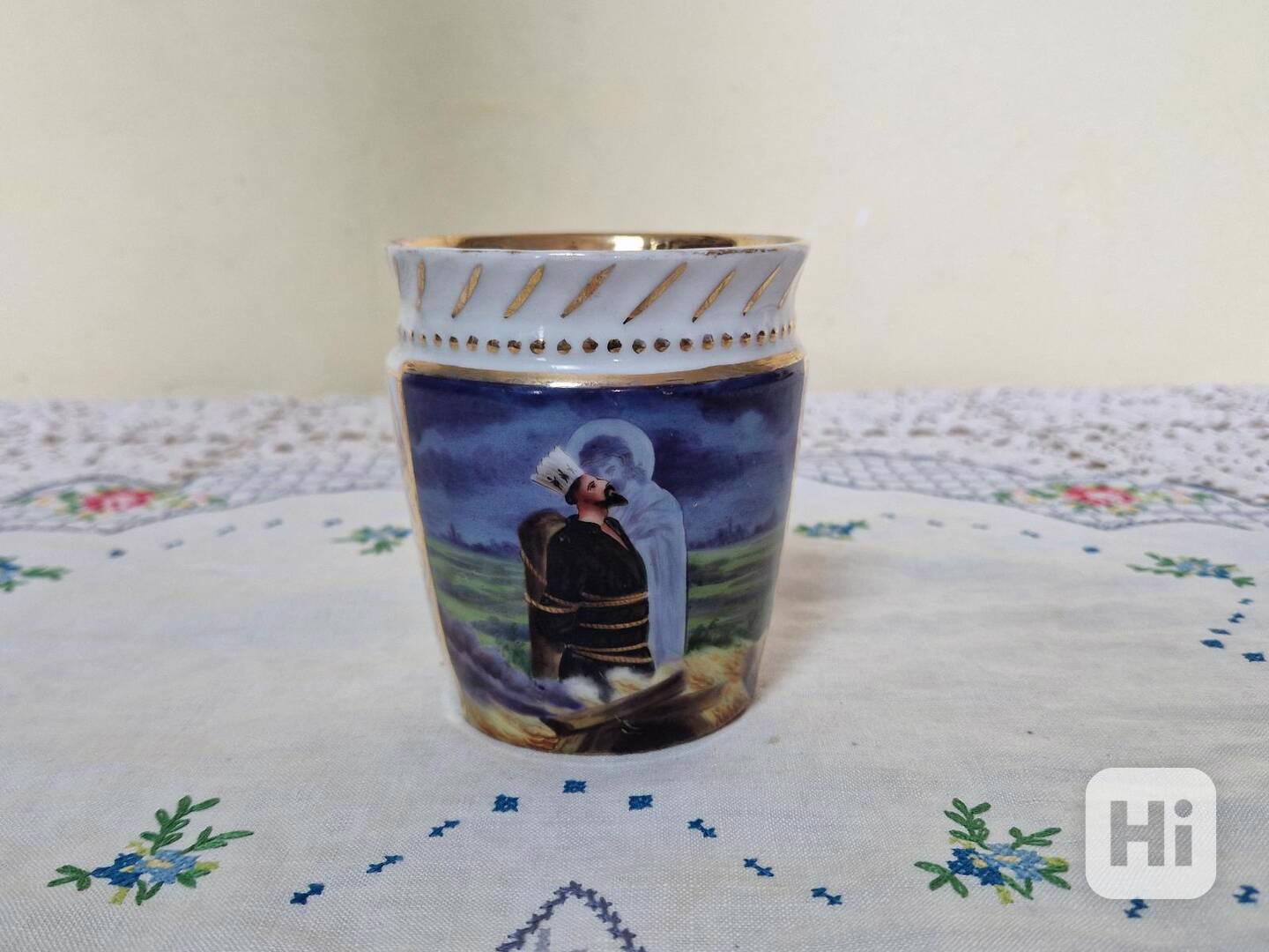 Vzácný starý ručně malovaný Hrnek Jan Hus a Ježíš