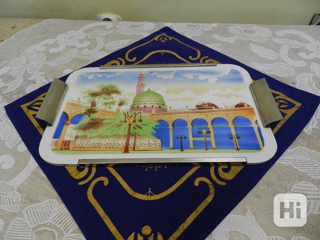 Krásný hranatý tác v kovové montáži, stříkaný dekor, velmi zachovalý stav - Jílové u Děčína, 1 pol 20 stol.