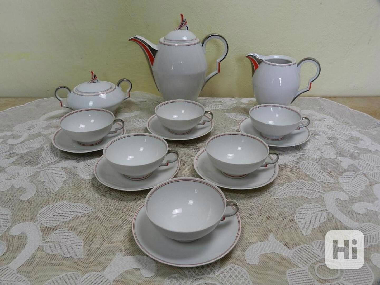 Luxusní stylový Art Deco kávový servis 6 osob - Chodov Czechoslovakia, značeno Sudetendeutches Porzellan, 30 léta, 20 stol.