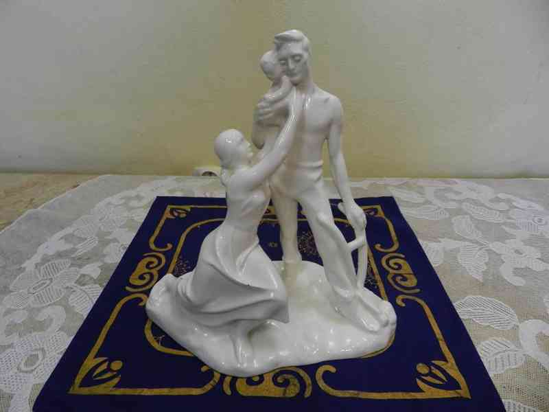 Krásná větší porcelánová plastika, Sokol - Eichwald, Dubí u Teplic, kolem 1950.