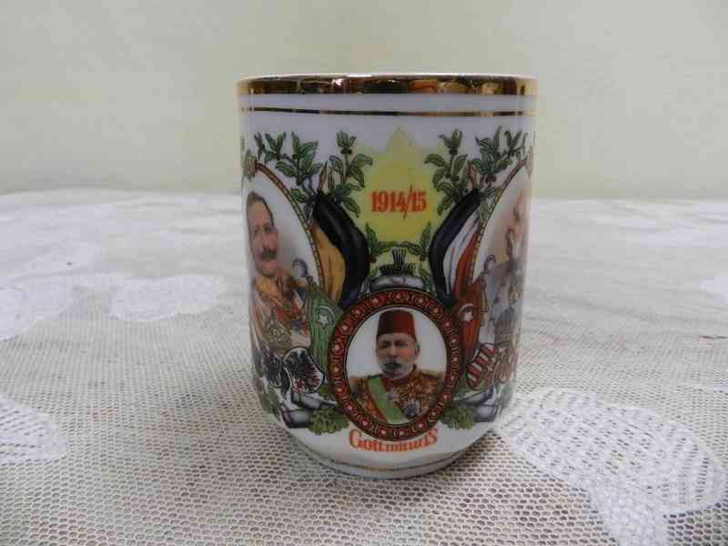 Zajímavý sběratelský porcelánový hrnek s Františkem Josefem, 1914-1915, velmi zachovalý stav.