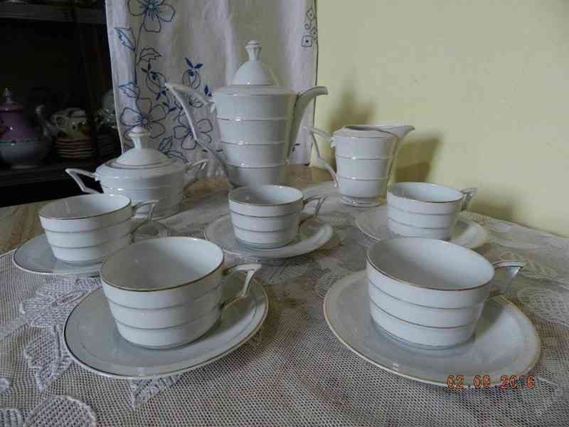 Luxusní Art Deco kávový servis 5 osob Dvory Czecho-Slovakia.