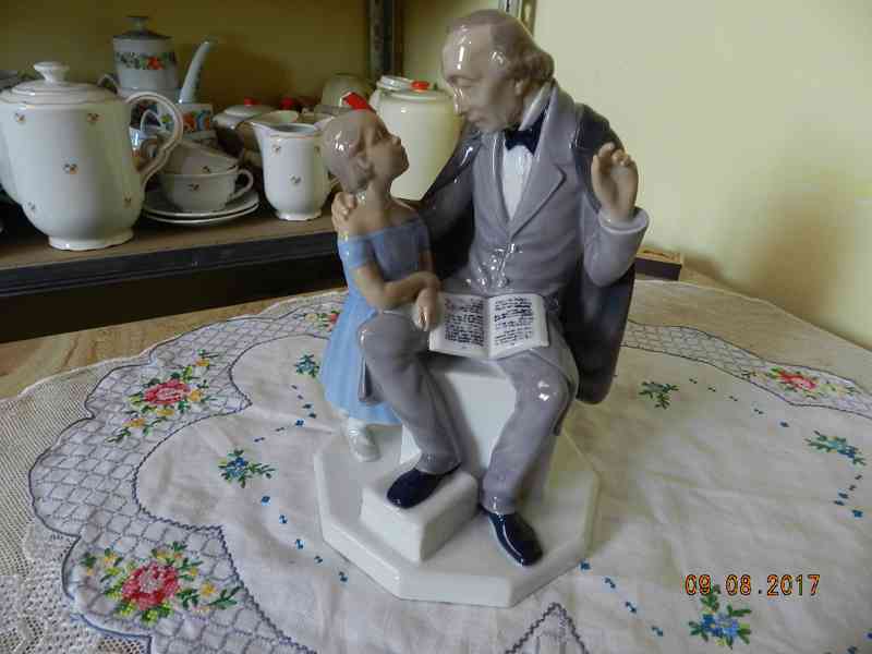 Zajímavé porcelánové sousoší, Hans Christian Andersen - Royal Copenhagen, Dánsko.
