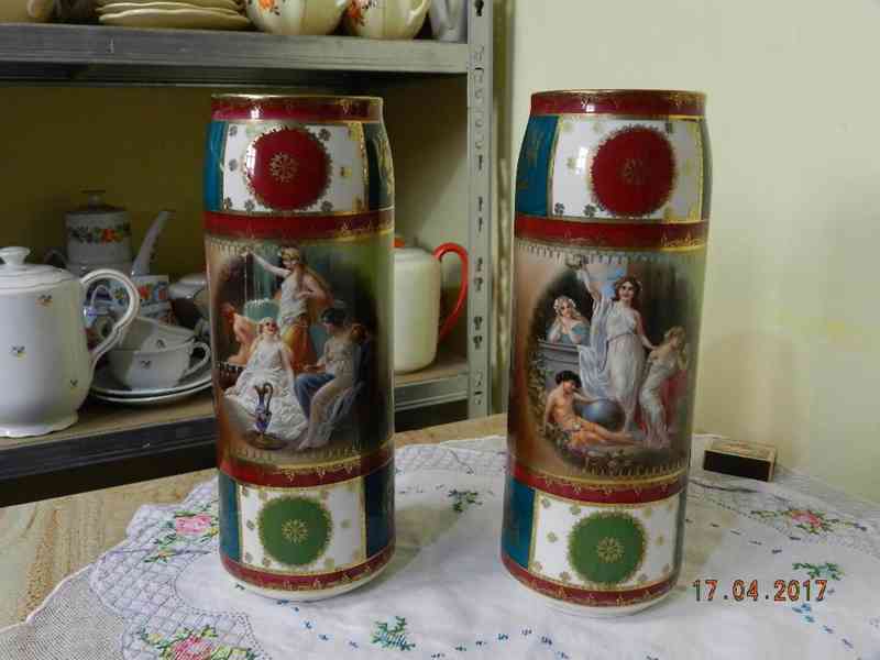 Nádherné secesní párové Vázy MZ Austria, Stará Role, kolem 1900.