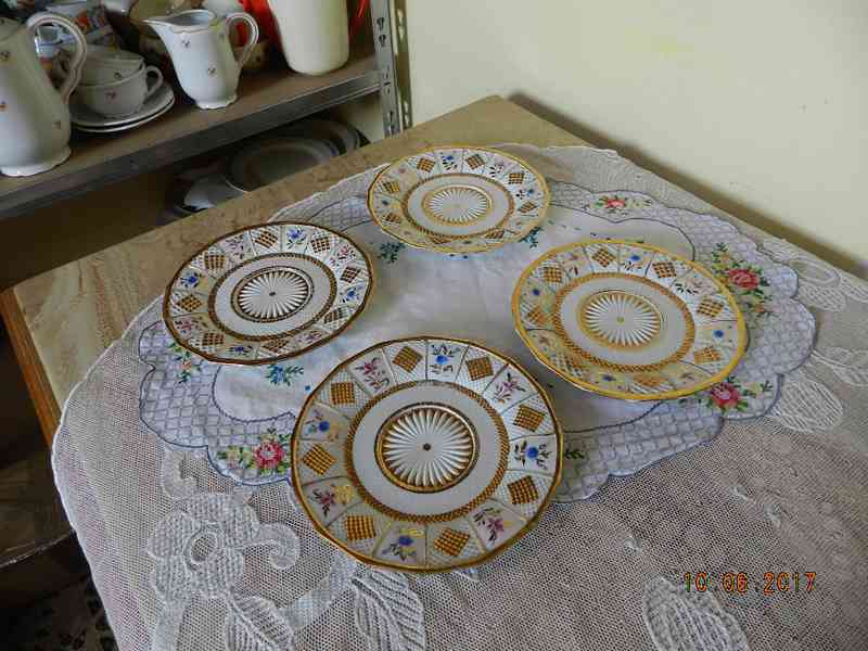Luxusní velmi staré masivní zlacené talíře, ruční malba - Míšeň, sada 4 kusy.