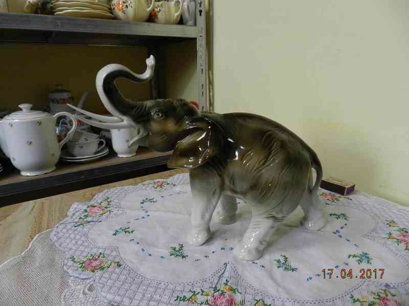 Krásná porcelánová soška Slon, Top Stav - Royal Dux Czechoslovakia, kolem 70 let 20 stol.