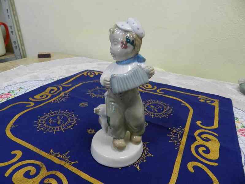 Hezká stará soška, Chlapec s harmonikou a pejskem - Royal Dux, Elly Strobach.