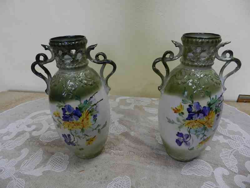 Krásné secesní párové Vázy, ruční malba, Květiny - Čechy, kolem 1900.