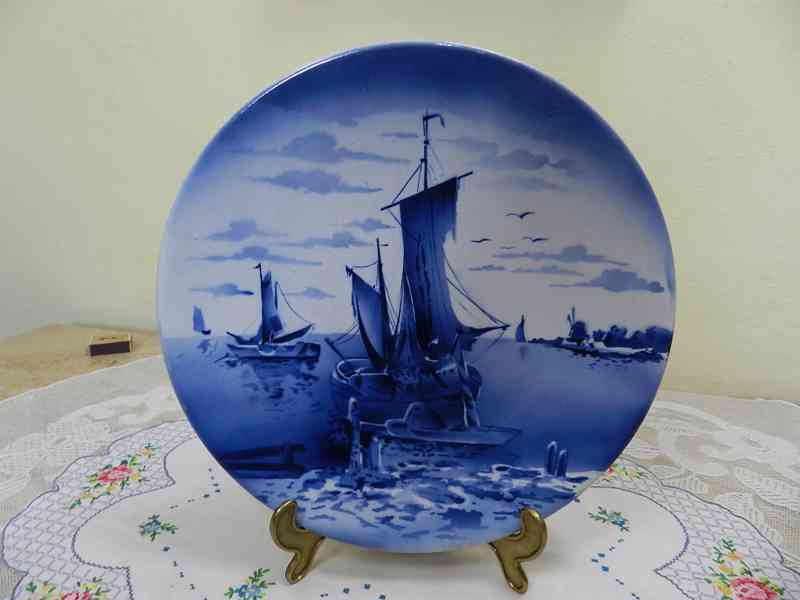 Obří starý dekorační silnostěnný Talíř, Lodě - Holandsko.