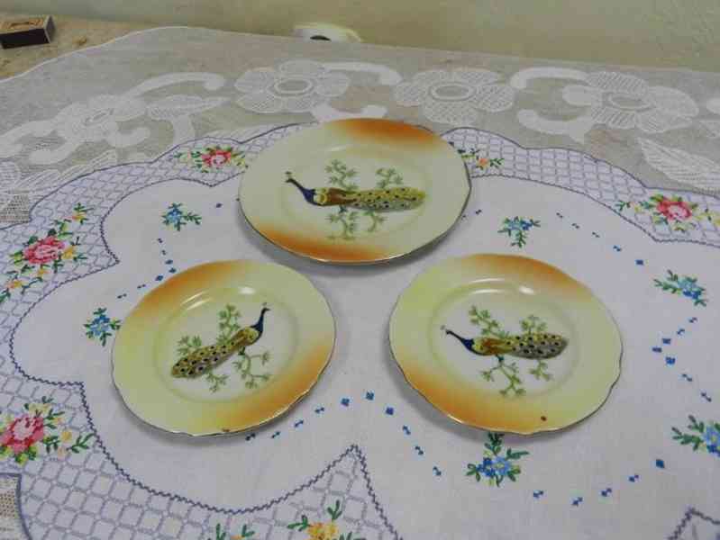 Sada 3 krásné malované dekorační Talíře s pávem - Victoria Stará Role Czecho-Slovakia, kolem 1920.